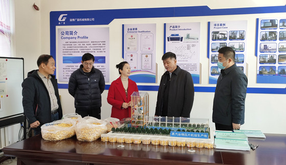 熱烈歡迎淄川區(qū)領(lǐng)導(dǎo)蒞臨廣富機(jī)械有限公司 調(diào)研指導(dǎo)蒸汽玉米壓片機(jī)生產(chǎn)工作
